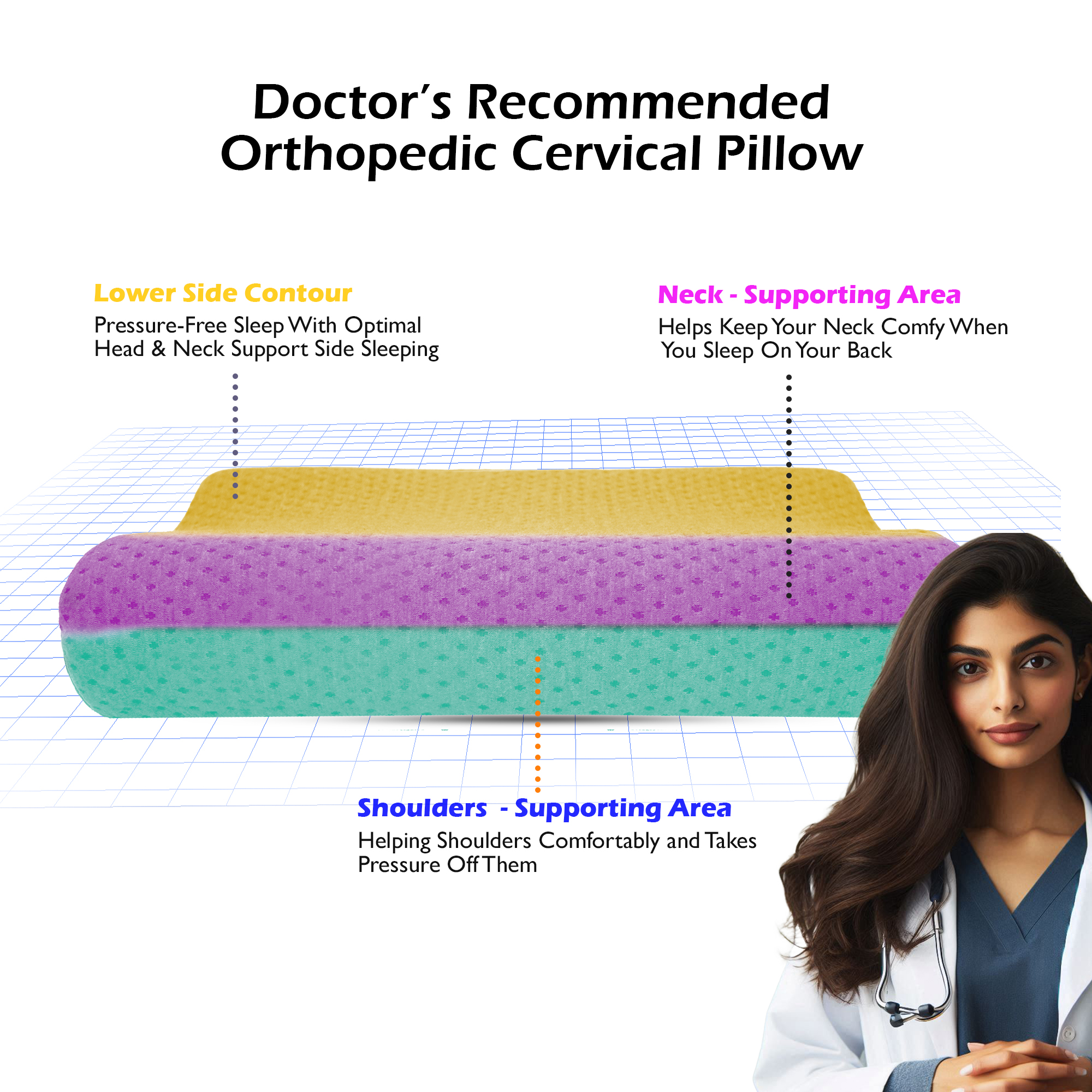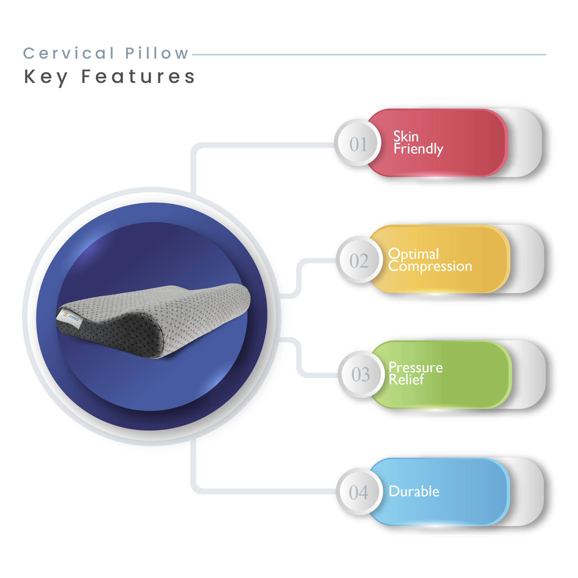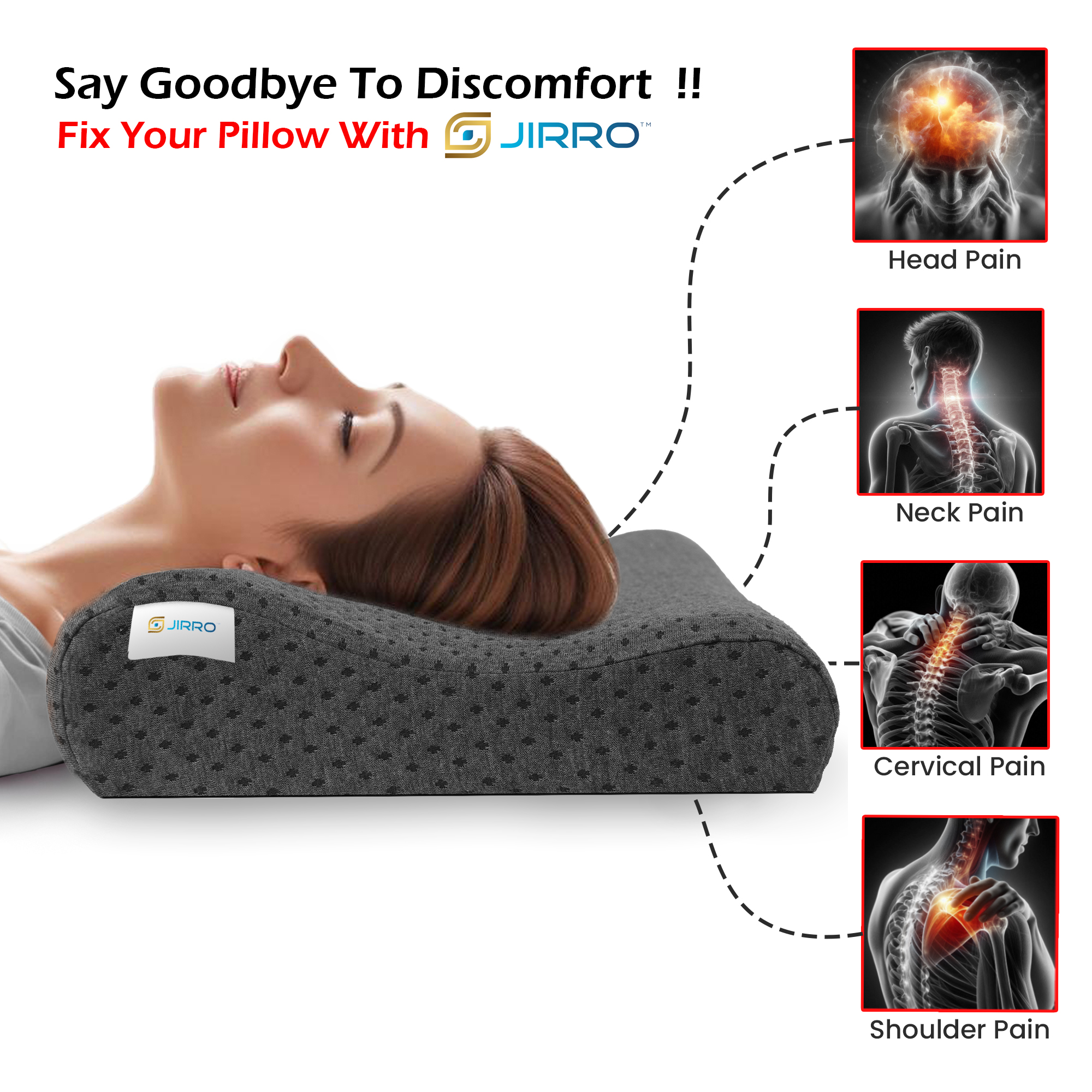 JIRRO Ultimate Contour Cervical Neck Pillow for Pain Relief Sleep, Improves Posture & Spinal Alignment, Neck Pain Relief Cushion with Ultra Responsive Memory Foam & Skin Friendly Cover,