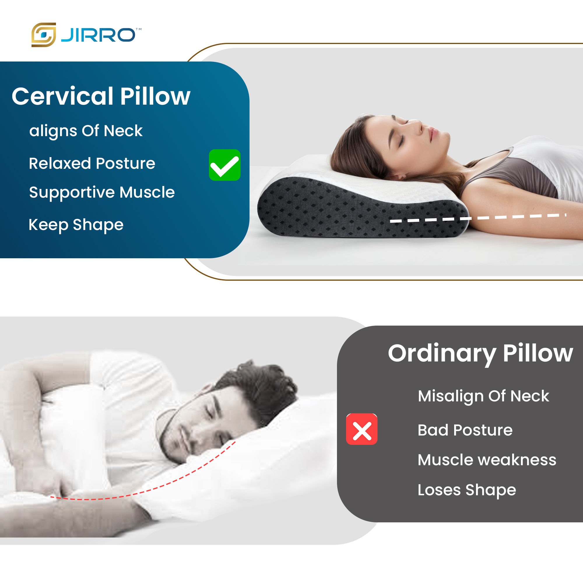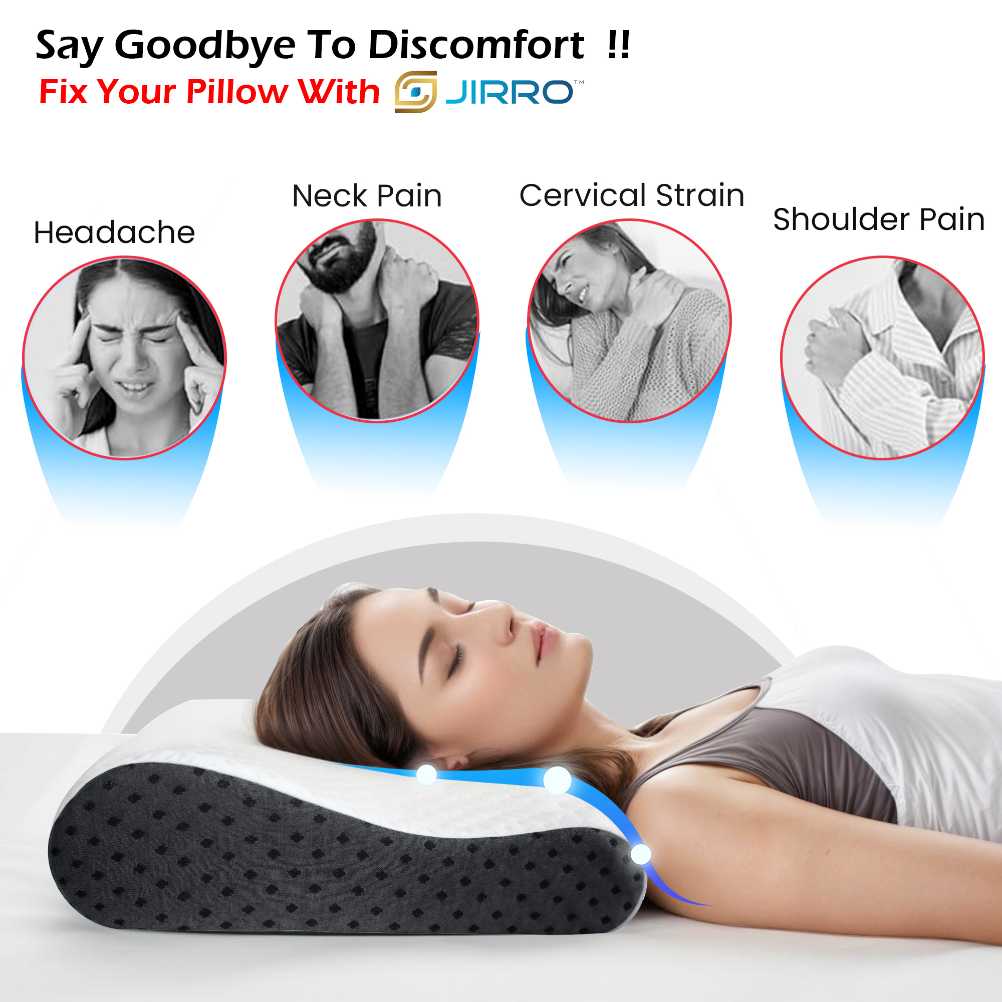• Comfortable Contour Design: JIRRO Contour Cervical Pillow provides medium firmness to support every part of your head. It is designed to promote proper neck support and enhance comfort during sleep.