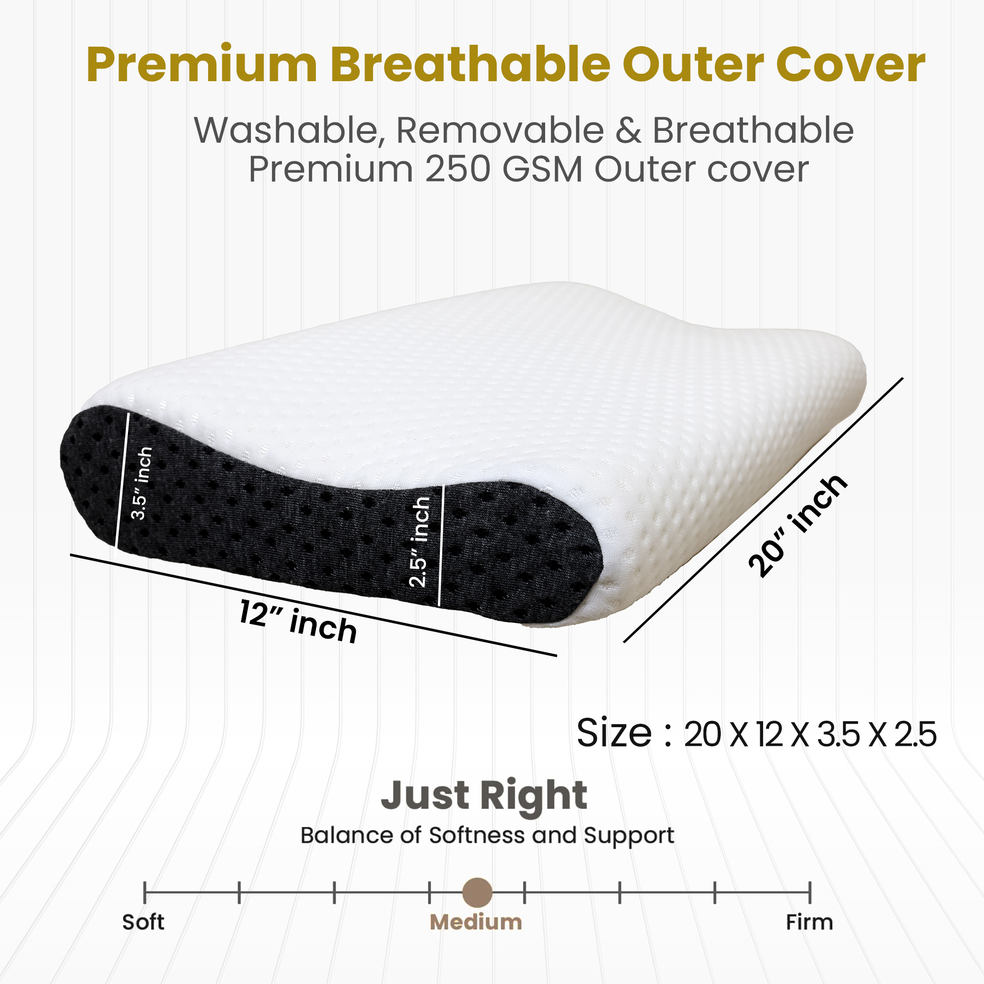 • Breathable Outer Cover: Equipped with a high-quality, removable, and machine-washable outer cover, our pillow offers enhanced breathability and easy maintenance.
